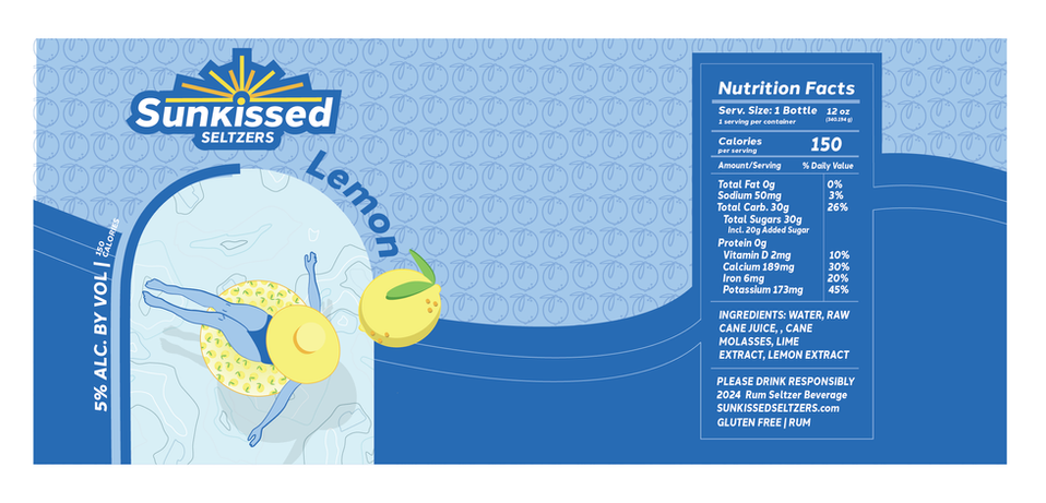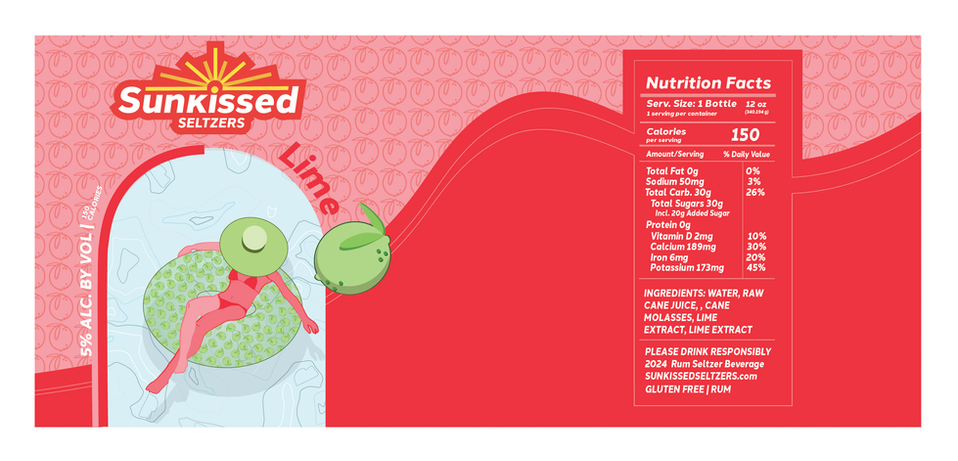 While creating Sunkissed Seltzers, I wanted to create an eye-catching product-catching. In previous projects, I stuck with more of a neutral color palette. I stepped out of my comfort to portray this summer drink. Brighter colors were based around a light and fun drink, geared towards sitting by the pool and relaxing. The shape of the packaging replicates almost a wave with the curves on the side and the cans sitting in circles relating to pool floats as in the design. The main question was how to portray this drink to grab the eye. The large print logo and the interesting design layout captivate the eye of the customers, along with the bright colors. A problem that I encountered while executing the product was smaller details. Consistency, depth, and color were some of the main attributes that pulled the packaging together creating. A visual guide for everything to stay exact helped create a sense of unity between the products. Outlining, adding shadows, and creating layers also created more depth in the pieces. Picking the right color to match the background to the foreground and smaller details made it difficult to have everything concise. e. After fixing some of the simpler problems work was performed to showcase an excellent summer drink.